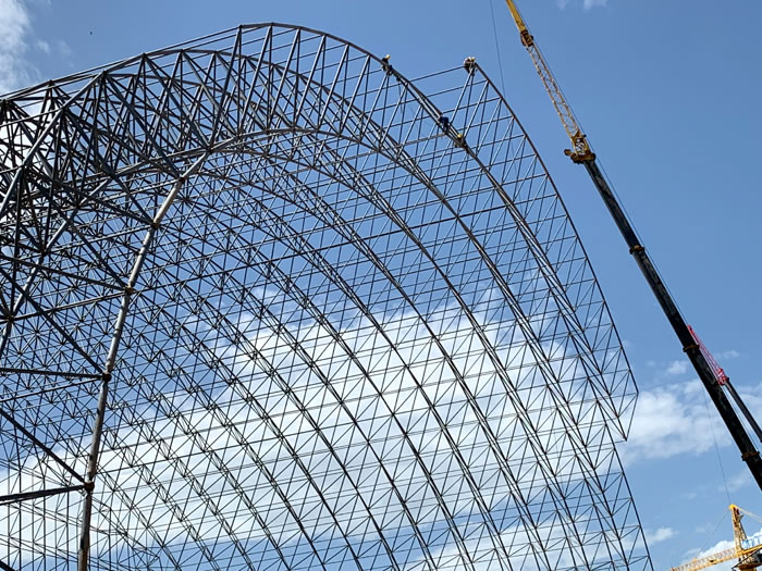 (2)网架加工前应对现场尺寸进行复测,确认无误后方可进行加工、安装;网架制作、运输、安装应遵守《空间网格结构技术规程》JGJ7-2010、《钢网架延吉螺栓球节点》JG/T 10-2009、《钢网架延吉螺栓球节点用高强度螺栓》 GB/T 16939-2016、《延吉钢结构延吉工程延吉施工规范》 GB50755-2012、《延吉钢结构延吉工程延吉施工质量验收标准》 GB50205-2020。